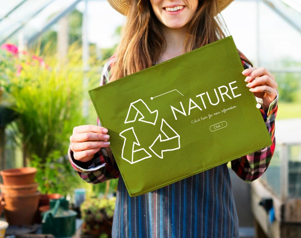 Nutzen Sie wasserbasierte, emissionsarme Produkte oder Naturpigmente. Sie erhalten satte Töne, kurze Trocknungszeiten und verbessern die Raumluftqualität. Testen Sie Farbtöne an verdeckten Stellen, um Überraschungen nachhaltig zu vermeiden.